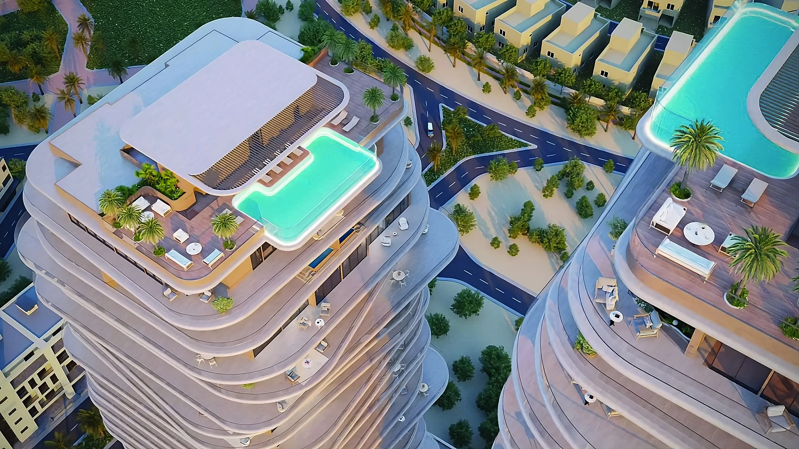 Zwei miteinander verbundene Türme mit über 500 Residenzen bieten ein Lifestyle-Angebot der Extraklasse – von Spa und Kino über Lazy River bis hin zu Sky Lounges – und vereinen moderne Eleganz mit Gemeinschaft und Wohlbefinden