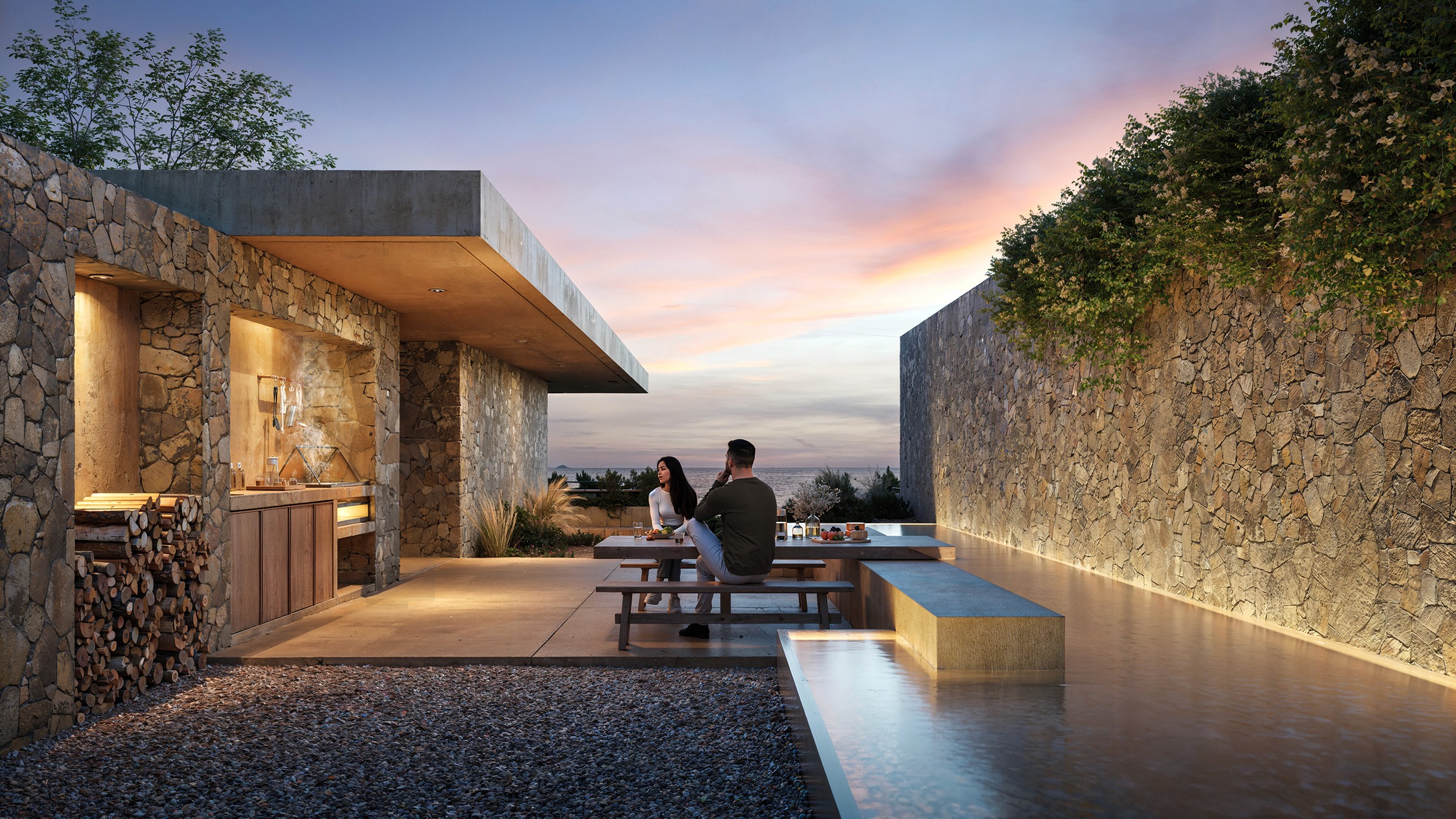 Villa 4 follows Sordo Madaleno's signature approach — integrated into the natural slope, the main level opens as an expansive social space with kitchen, dining and lounge areas flowing onto outdoor terraces, covered porches and chill-out zones. Four spacious bedroom suites offer natural light and landscape views, with the primary suite featuring a walk-in wardrobe, en-suite bathroom and private terrace.