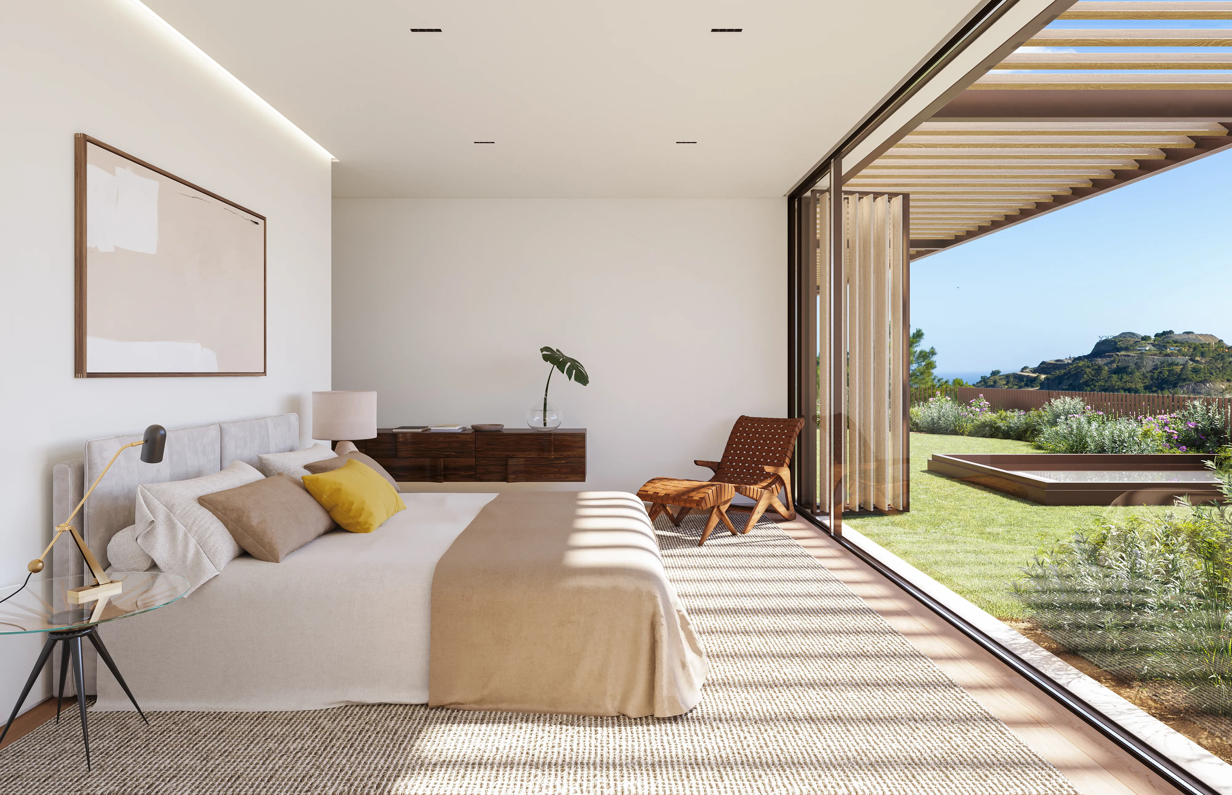 Villa Jacaranda is a contemporary residence designed by Arthur Casas, the internationally recognised São Paulo studio celebrated for clean lines, balanced proportions and a seamless relationship between indoor and outdoor environments. Situated within the gated community of El Madroñal in Benahavís, the villa is surrounded by pine forests and cork oak trees, with sweeping views of the Mediterranean and mountains. Puerto Banús, the Golden Mile and Marbella's finest schools and golf courses are within 10–15 minutes.